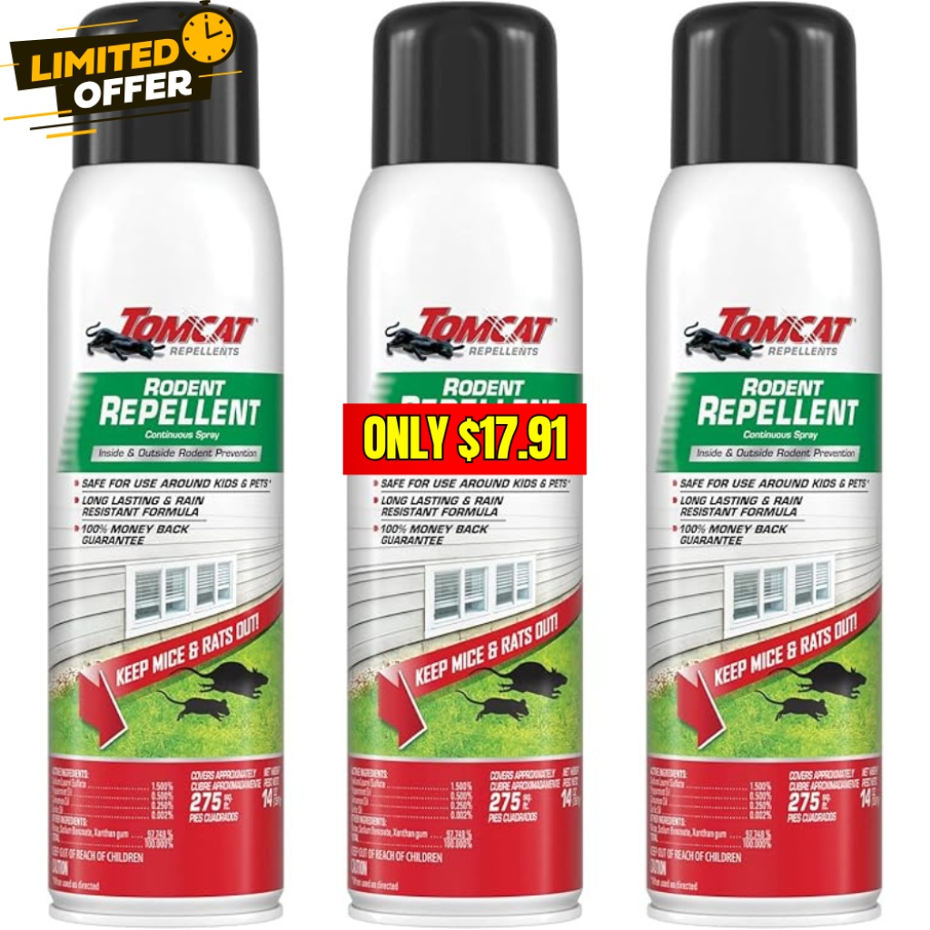 Tomcat Rodent Repellent 3-Pack Deal: 50% Off at Rodent Repellent Continuous Spr…
