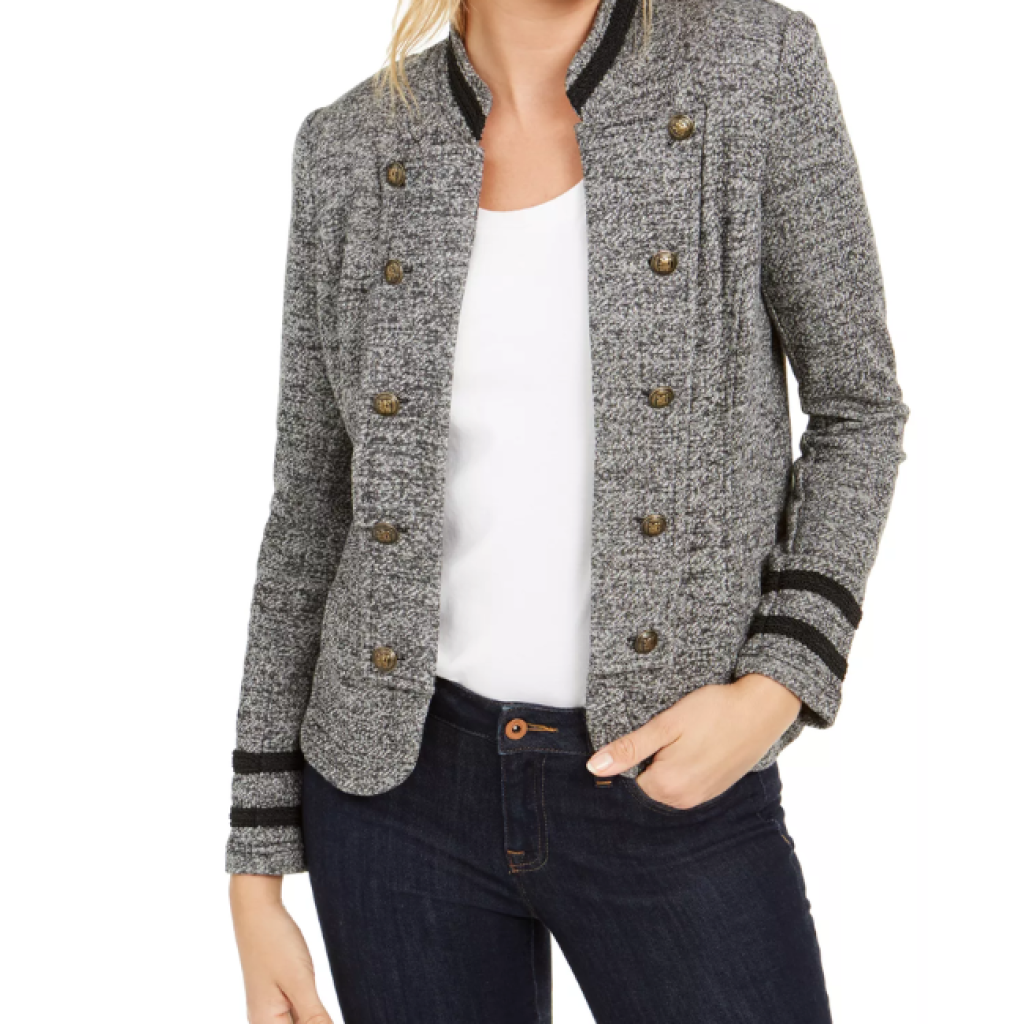 Macy’s is offering the Tommy Hilfiger Women’s Marled Military Band Jacket under $44. This limited-time price includes instant savings with no promo code required. Availability and pricing may change at any time.