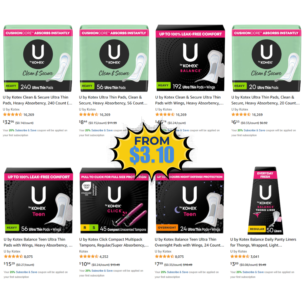 U by Kotex Pads & Tampons are now available for free with a coupon. To get this amazing deal, simply use the coupon with Subscribe & Save. This is an awesome price for this product, and you can cancel your subscription anytime for free. Don’t miss out on this incredible offer and shop now to save big on U by Kotex Pads & Tampons.