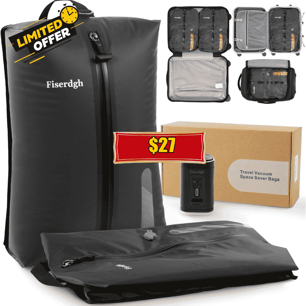 FISERD77Copy to ClipboardSave on this Vacuum Compression Bags for Travel by using a promo code FISERD77! This is awesome price for this product!Visited 21 times, 1 visit(s) today
