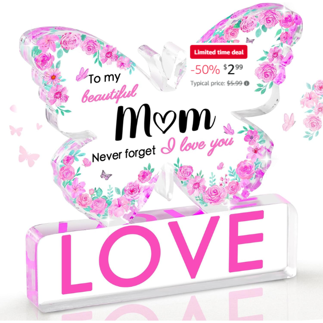 This limited-time sale offers 50% off the Valentines Butterfly Acrylic Plaque. No coupon or promo code is needed to redeem this offer. Simply shop here to get the discounted price. This unique acrylic plaque is a thoughtful gift for Valentine’s Day, making it a great opportunity to save on a special item.Grab this deal before it’s gone ?