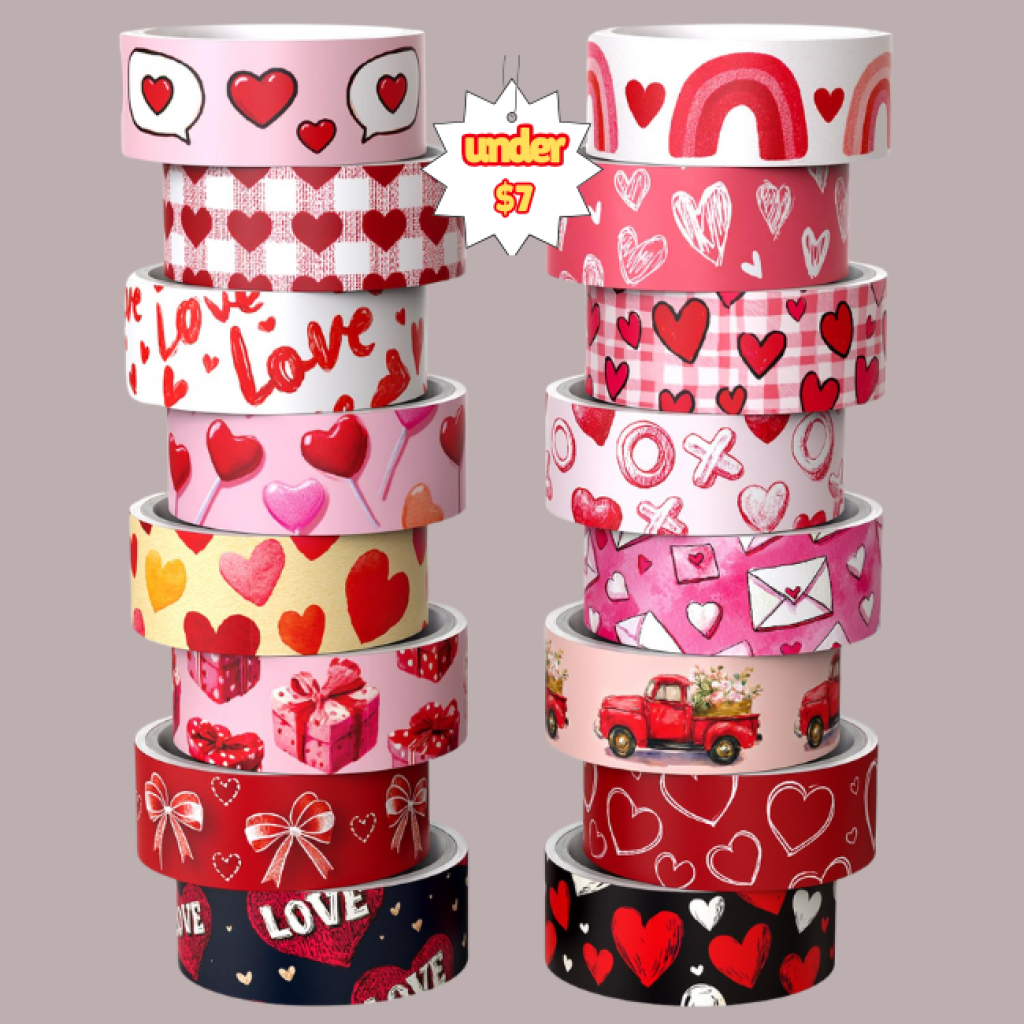 Valentine’s Day Washi Tape Set – 16 Rolls