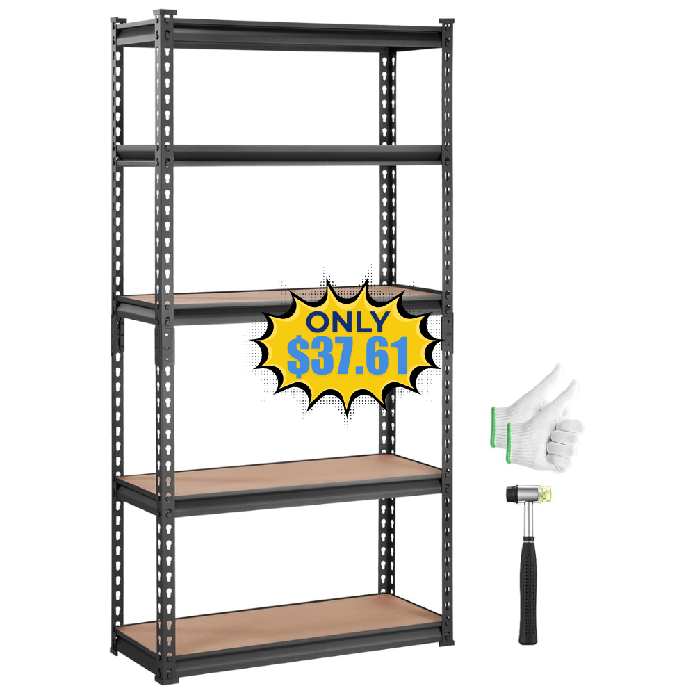 The VEVOR Storage Shelving Unit, 5-Tier is a must-have for any home or office. This sturdy shelving unit provides ample storage space for your belongings. Right now, you can get it at an awesome price – save 25% off the regular price! No coupon or promo code is needed, just shop here and enjoy the discount. This is a fantastic opportunity to upgrade your storage solution without breaking the bank.