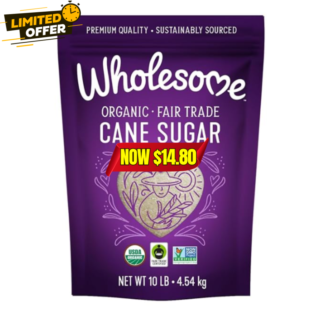 The Wholesome Sweeteners 10-Pound Organic Cane Sugar is a fantastic product for those looking for a high-quality sugar option. This 10-pound bag is perfect for baking, cooking, or stockpiling. The current price for this product is an amazing deal, making it a great time to stock up. You can find this Wholesome Sweeteners 10-Pound Organic Cane Sugar at the store, no coupon or promo code required.Grab this deal before it’s gone ?