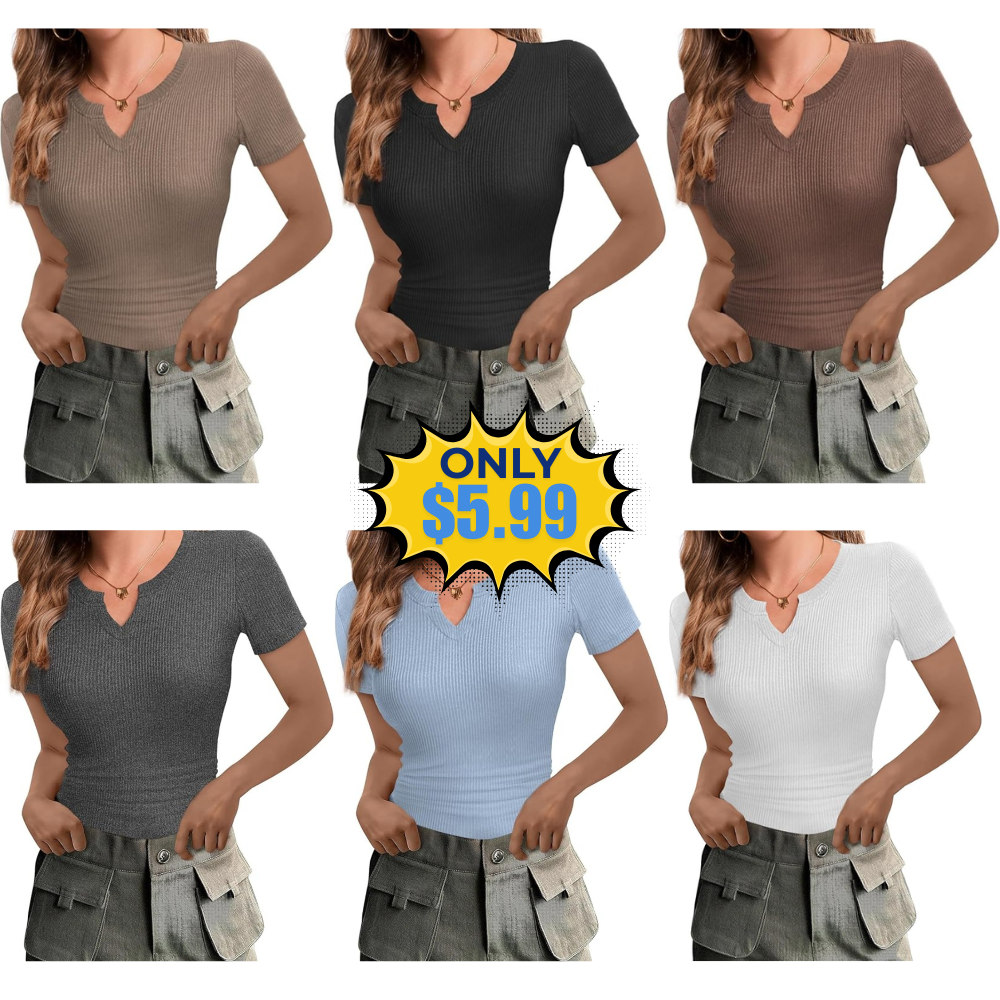 Save on this Women V Neck Ribbed Knit Fitted Shirts without even using a coupon or promo code! This is awesome price for this product!