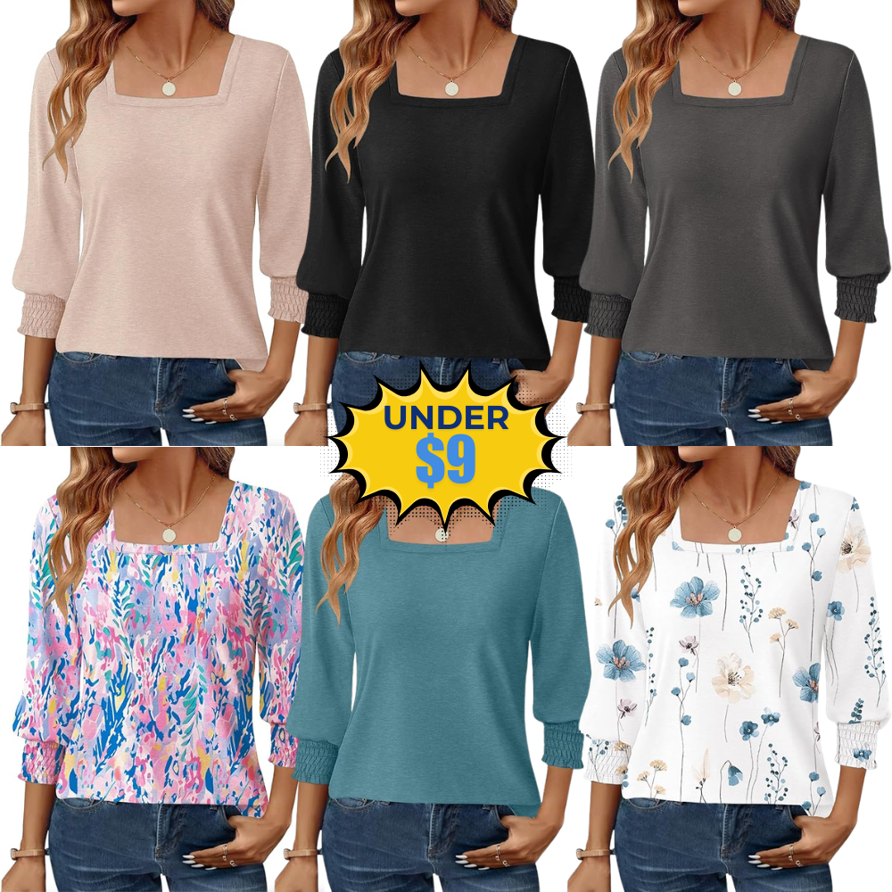 Womens 3/4 Sleeve Shirts Square Neck Promo: Save with Code E7U5ZYJ8