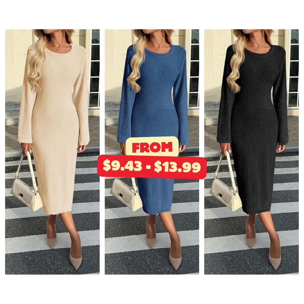 Womens Long Sleeve Midi Sweater Dress Promo: Save Now at DealsFinders.com