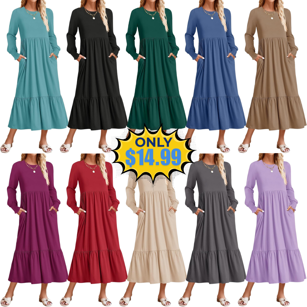 Women’s Long Sleeve Tiered Midi Dresses Sale: Save 19% at DealsFinders.com