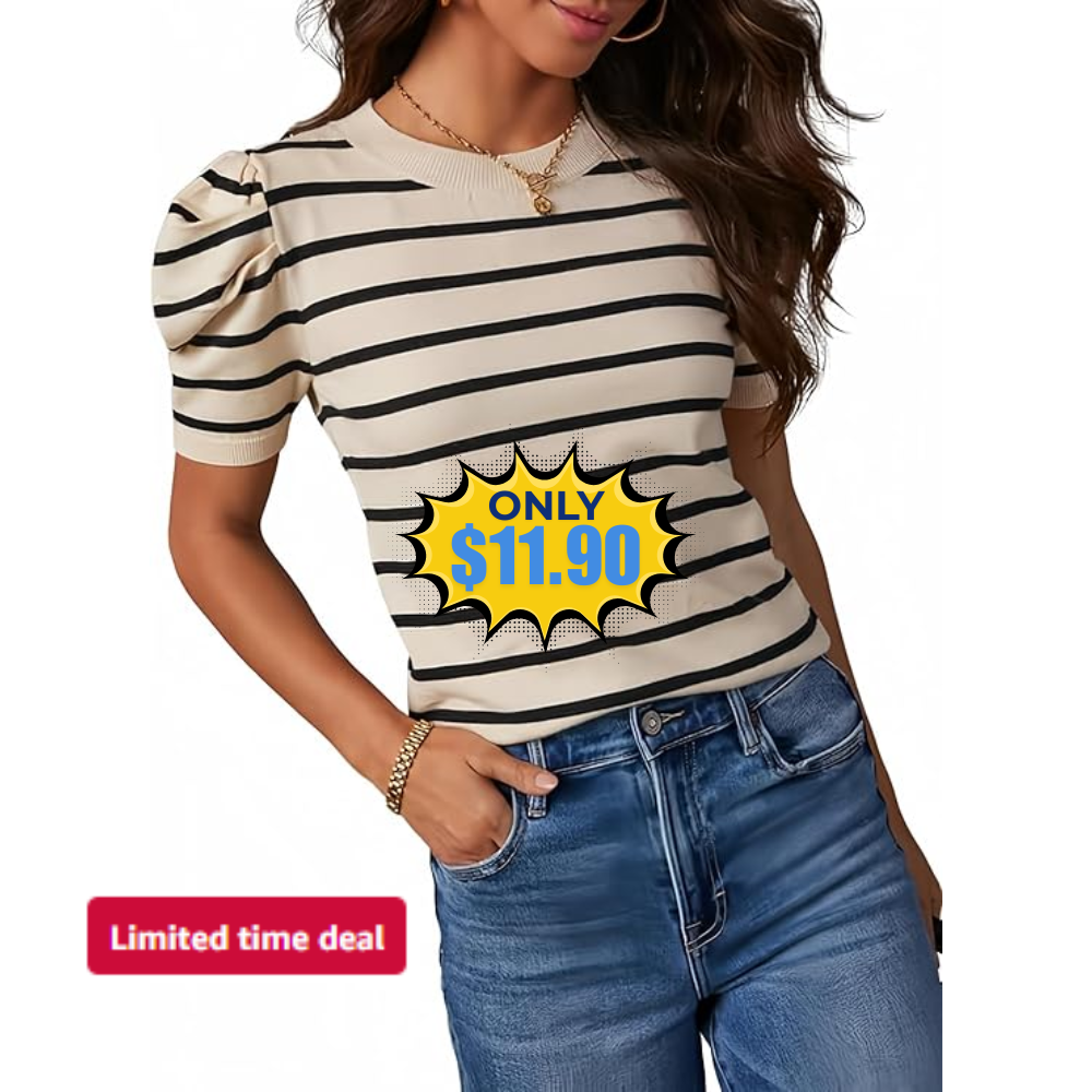 Women’s Short Puff Sleeve Knit Tops Sale: Save 54% at DealsFinders.com