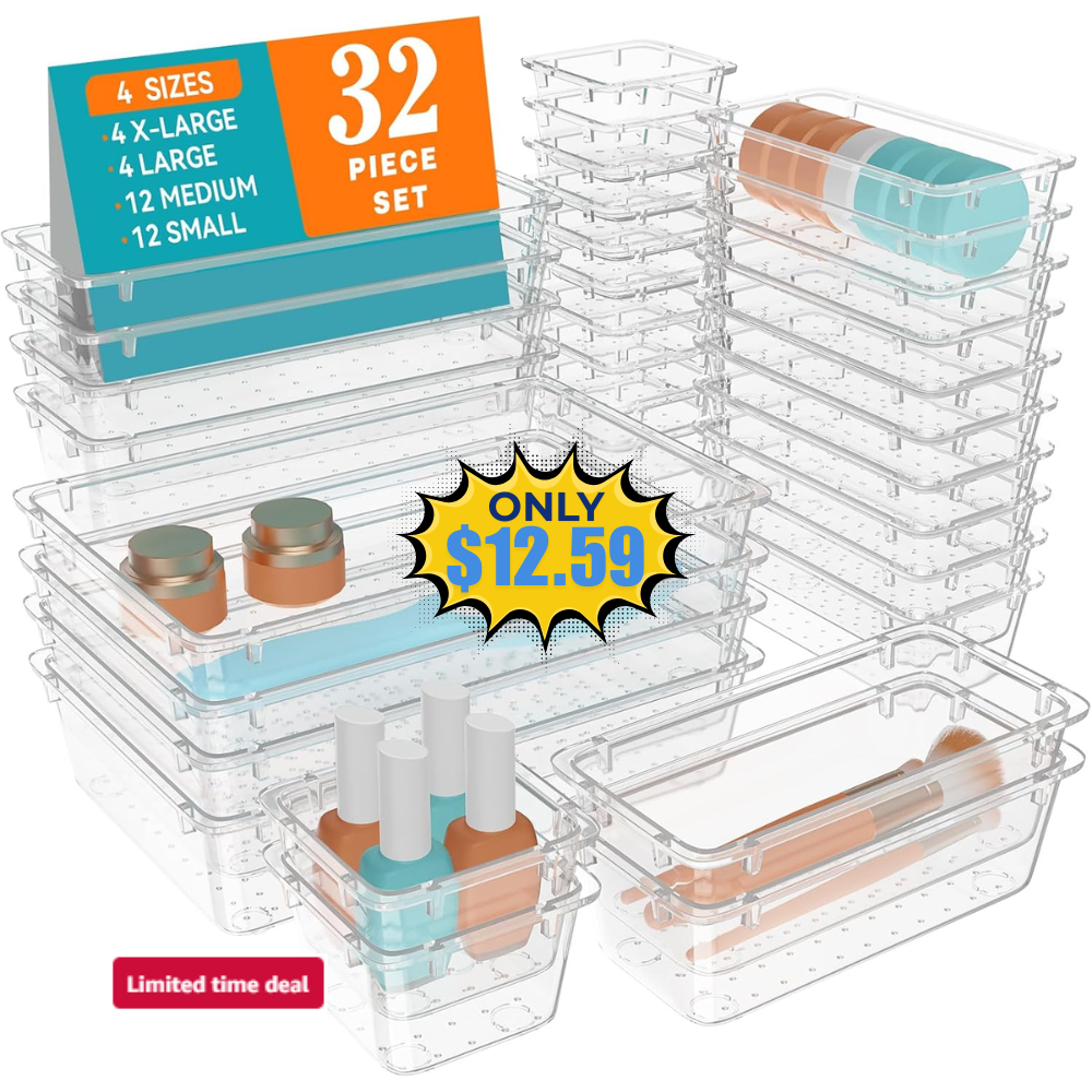 WOWBOX 32 PCS Clear Plastic Drawer Organizer Sale: Save 30% at DealsFinders.com
